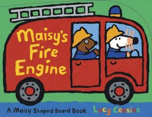 Maisy's Fire Engine is die-cut in the shape of a bright red fire engine with Maisy waving along with her friend Cyril. Cyril checks the water in the fire hose, but he sprays it too near to a little black cat, who is scared and climbs onto a house. But brave firefighter Maisy fetches a ladder and brings her down again!
