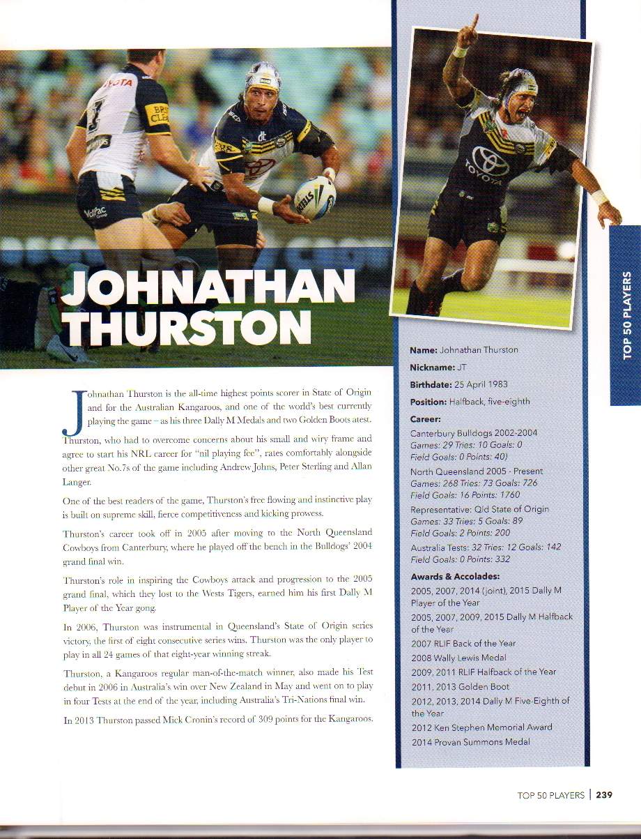 This comprehensive salute to the game features every club, every State of Origin and lists the Top 50 Players of the past 50 years.